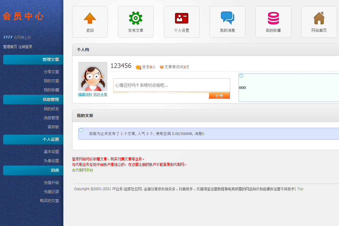 登录会员中心效果,各种功能都正常,自己也可以修改增加自己需要的功能。